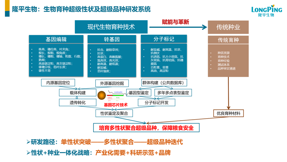 隆平生物目前已建成分子生物学、遗传转化、性状分析及一年四代回交等具有国际竞争力的生物芯片研发平台,在海南崖州、河南、甘肃、辽宁等地建有“生物育种科研基地”,承担了公司性状评估及回交转育的科研任务,每年完成上千个转化事件的性状评估及上百个品种的回交转育。此外,隆平生物投资建设的生物育种双创中心11层科研办公大楼于2025年1月正式投入使用。该项目旨在为南繁硅谷创建国际一流的生物“芯片”研发平台,打造自主可控的核心竞争力。